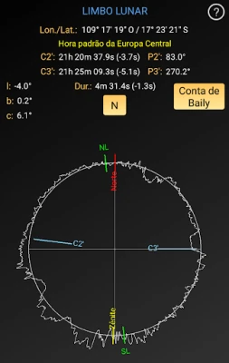 Com acesso a um vasto banco de dados que abrange de 1900 a 2100, e a possibilidade de estender a consulta de 1550 a 2300, esta ferramenta oferece uma profundidade de informação sem igual. Explore as circunstâncias gerais de cada fenômeno com mapas de visibilidade global detalhados e mergulhe nas particularidades locais com cálculos precisos do início, fim, duração e altitude para qualquer ponto no planeta. Mapas interativos e simulações imersivas permitem-lhe antecipar o espetáculo, acompanhando o caminho da sombra lunar sobre a Terra ou a progressão da Lua através da sombra terrestre. Prepare-se para testemunhar as contas de Baily e o perfil do limbo lunar como se estivesse lá.
