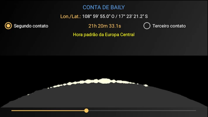 A flexibilidade de localização é incomparável: selecione seu ponto de observação a partir de uma base de dados extensa, insira coordenadas manualmente ou utilize seu GPS para precisão instantânea. Para os aventureiros, o acompanhamento contínuo de sua posição e a atualização em tempo real dos tempos de contato são ideais para observações em movimento, como a bordo de um navio. Não perca nenhum evento: adicione eclipses e trânsitos ao seu calendário pessoal e acompanhe a contagem regressiva. Disponível em português e várias outras línguas, esta aplicação foi pensada para democratizar a experiência astronômica a nível mundial.