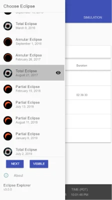 Prepare-se para testemunhar um dos fenómenos celestiais mais espetaculares com o Eclipse Explorer, o seu guia definitivo para os eclipses solares. Desenvolvido pela FlyteSoft, esta aplicação gratuita transforma o seu dispositivo numa ferramenta astronómica pessoal, permitindo-lhe explorar detalhadamente os eclipses que ocorrerão entre os anos de 1900 e 2100. Utilizando a sua localização GPS, o Eclipse Explorer oferece uma perspetiva única e personalizada, simulando com precisão a posição do Sol e da Lua e projetando em tempo real o percurso da sombra lunar sobre a Terra. Mergulhe na dinâmica celeste e descubra as circunstâncias exatas destes eventos impressionantes, seja onde for que se encontre no globo.