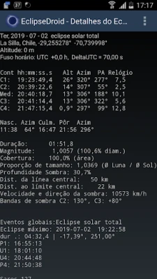 Para os entusiastas e observadores dedicados de eclipses solares, **EclipseDroid** emerge como o parceiro indispensável para uma experiência impecável. Desenvolvido para transformar a complexidade da observação em um processo suave e automatizado, este aplicativo fornece cálculos de alta precisão para os tempos de contato cruciais do eclipse — C1, C2, C3 e C4 — diretamente da sua localização atual ou de um ponto personalizado. Com suporte aprimorado para o idioma português e a capacidade de pesquisar eclipses específicos para a sua área, **EclipseDroid** garante que você esteja sempre um passo à frente dos fenômenos celestes mais espetaculares.