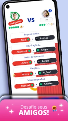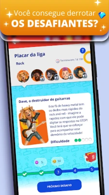 STOP 2 eleva a competição a um novo patamar, convidando você a duelos 1x1 contra amigos ou jogadores de todo o mundo. Acelere seus pensamentos para preencher as cinco categorias antes que o tempo esgote seu rival, transformando cada partida em uma corrida cômica e estratégica. Com mais de 200 categorias distintas para explorar, o tédio não tem vez. Jogue em qualquer lugar, seja no trajeto diário ou no intervalo do trabalho, e descubra que a diversão nunca para, mesmo quando seus amigos estão ocupados. Encontre seu adversário perfeito e teste suas habilidades de quiz de conhecimentos gerais a qualquer momento.