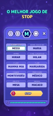 Prepare-se para desafiar sua agilidade mental e vocabulário com Stopots, o jogo de palavras que reacende a chama da competição e da diversão entre amigos e família! Este clássico passatempo ganha vida, convidando você a mergulhar em um universo de temas variados, desde "Nome" e "Cor" até "Animal", que se tornarão a base para cada rodada eletrizante. A cada partida, uma letra é sorteada, e é com ela que a corrida contra o relógio e a criatividade começam, exigindo respostas rápidas e originais para cada categoria.