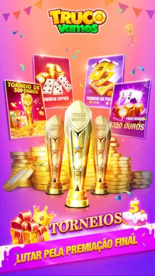 Mas a emoção em Truco Vamos não para por aí. Explore um universo de caça-níqueis com temas cativantes, como o festivo Halloween, o próspero Piggy Trio e o místico Lucky Dragon, todos enriquecidos com animações espetaculares que prometem revelar a magia de grandes jackpots. Para os que buscam a glória, participe dos intensos torneios diários que abrangem Truco, Dominó e Poker. Desafie oponentes de todo o país, demonstre sua maestria e seja recompensado generosamente por suas vitórias, elevando seu status entre a comunidade de jogadores.