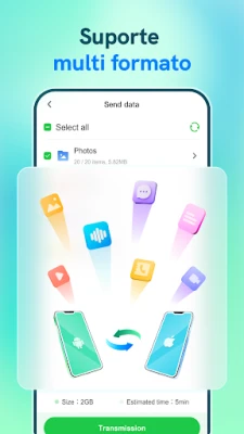 A flexibilidade e a eficiência são o coração de WatsGo. Escolha entre uma conexão estável e veloz via cabo OTG para dados do WhatsApp ou utilize a praticidade da leitura de código QR para transferir arquivos multimídia e documentos sem fio. O melhor de tudo: dispensa completamente o uso de um computador, permitindo que você gerencie a mudança diretamente do seu aparelho Android. Desfrute de transferências incrivelmente rápidas, com velocidades médias de 35 MB/s, e a segurança adicional de não depender da internet. As operações são realizadas através de um hotspot local ou cabo, garantindo que seus dados permaneçam totalmente privados e com custo zero de rede, inacessíveis a terceiros.